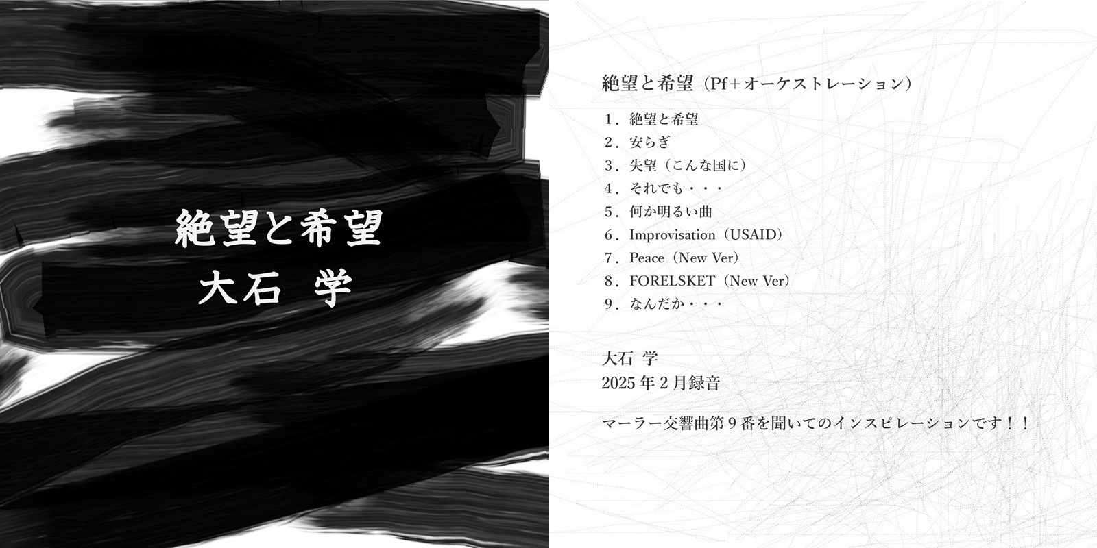 大石学 新作CD-R 「空海の教え(Solo Piano)「絶望と希望」