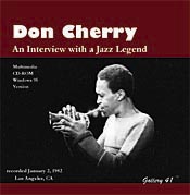 January 2, 1982 Don Cherry The first full-length interview to be released on multimedia CD-ROM by Gallery 41 features a rare, historical and uniquely personal conversation with Jazz legend Don Cherry accompanied by original photographs and art work from the Gallery 41 archives. Don shares with us the amazing creative energy he was surrounded with growing up around South Central Los Angeles' thriving Jazz scene in the 1940's and 1950's...how and where he met Ornette Coleman and Albert Ayler...and much more